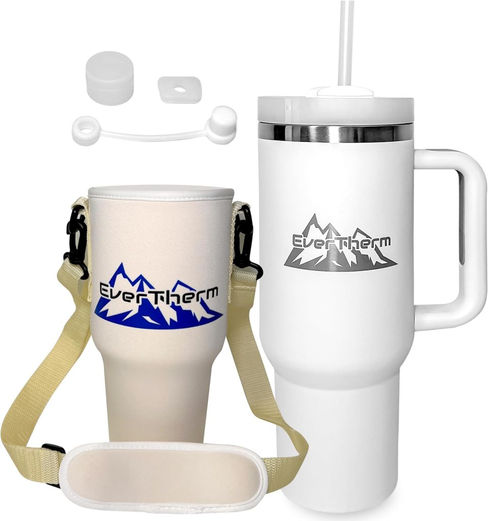 This 40oz Stainless Steel Insulated Tumble, Ever Therm bundle with a handle lid and straw, along with additional accessories, is perfect for both smoothies and beverages. The hands-free option, coupled with the spill-proof accessories, makes it a convenient choice. You can find more details or make a purchase through this link: Amazon – Stainless Steel Insulated Tumbler. Enjoy your smoothies and beverages on the go!