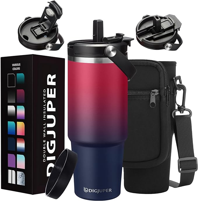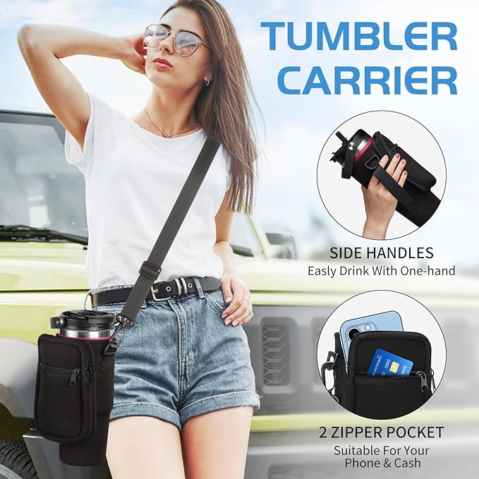 The 30 Oz Tumbler Carrier with Lid and Straw, https://amzn.to/3uHwRlG featuring an insulated design, a 2-in-1 lid with flip and straw, and additional accessories like a storage carrier pouch and protective water bottle boot, seems like a versatile and convenient choice. https://amzn.to/3uHwRlG
