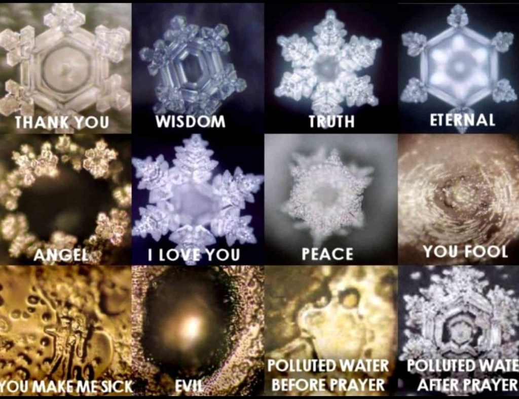 Over two decades, Japanese scientist Dr. Masaru Emoto delved into groundbreaking research, demonstrating how water’s molecular structure responds to human words, thoughts, and sounds. Freezing water samples labeled with positive or negative words revealed astonishing results. Crystals formed in the presence of positive intentions exhibited clarity and symmetry, while those influenced by negativity appeared distorted. Repeated experiments showed that water exposed to positive intentions formed structured, hexagonal patterns reminiscent of natural, flowing water. In contrast, polluted water and negative intentions disrupted the water’s structure.