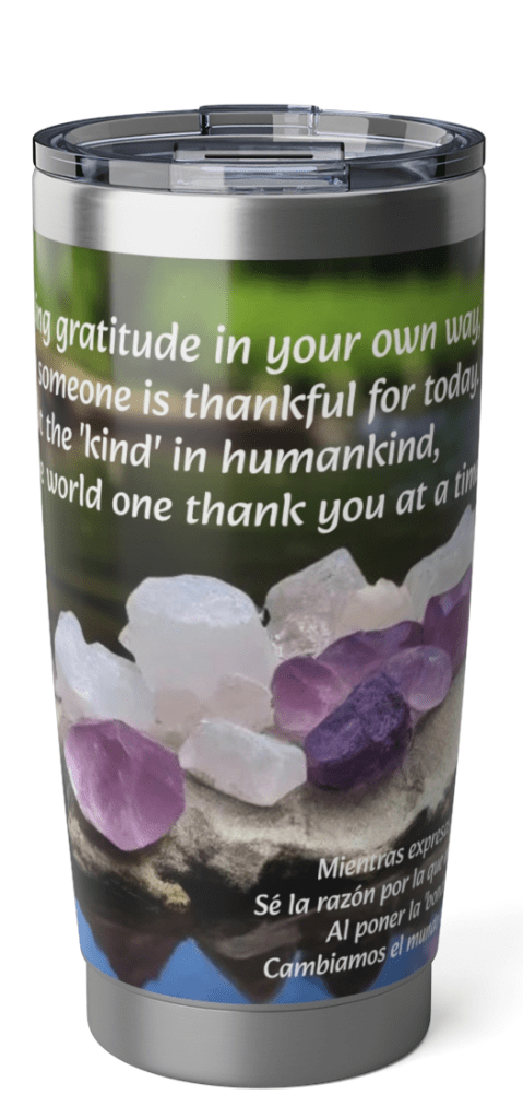 Now that you’re familiar with my current journey, let’s delve into the topic of gratitude, of thankfulness, of embodying the “kind” in humankind. Despite periodically glimpsing the turmoil of the world through media musings of death and destruction, I’ve chosen to seek, acknowledge, and then release rather than attempting to serve as a “way shower” for others to awaken to the injustices around us. I once believed I had more time to fight and change the world, but now I understand that true change begins with oneself. As the record of my life plays on, this new echo resonates within me: “While expressing gratitude in your own way, Be the reason someone is thankful for today. As we put the ‘kind’ in humankind, We’ll change the world one thank you at a time.”