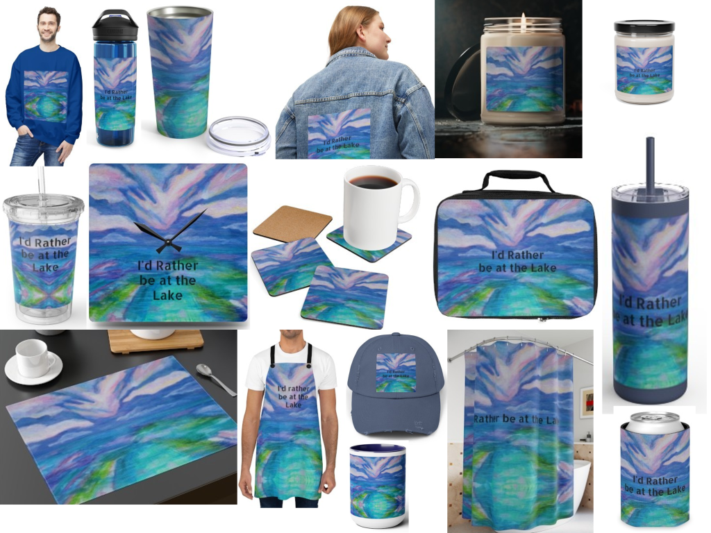 All products that have “-2” added to their description have the words, “I’d Rather be at the Lake” on them.
